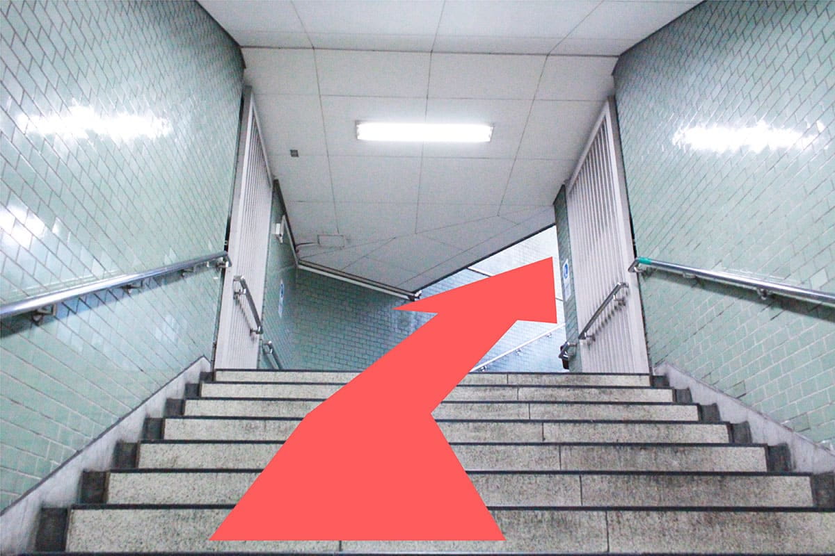 2番出口方面の階段へ