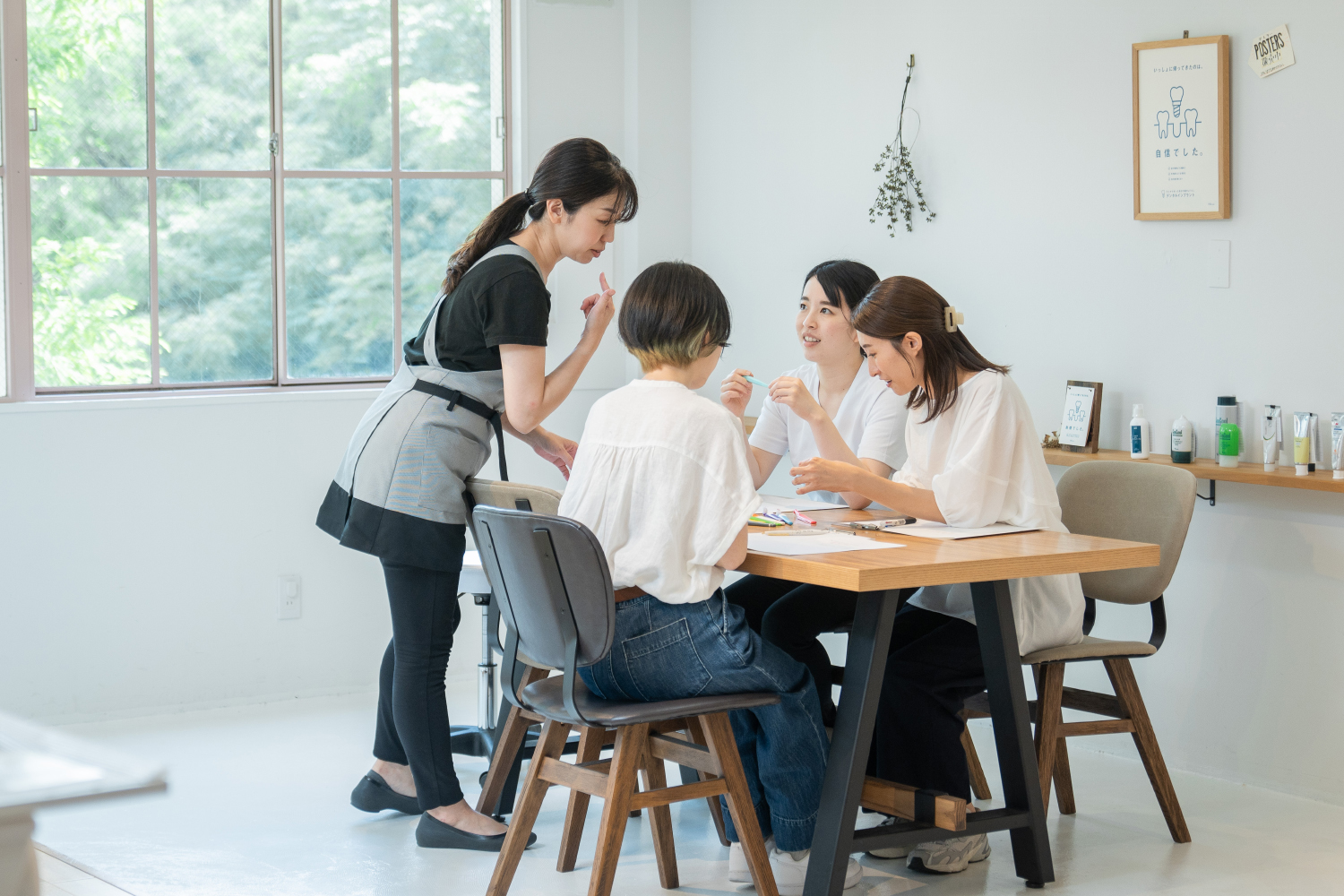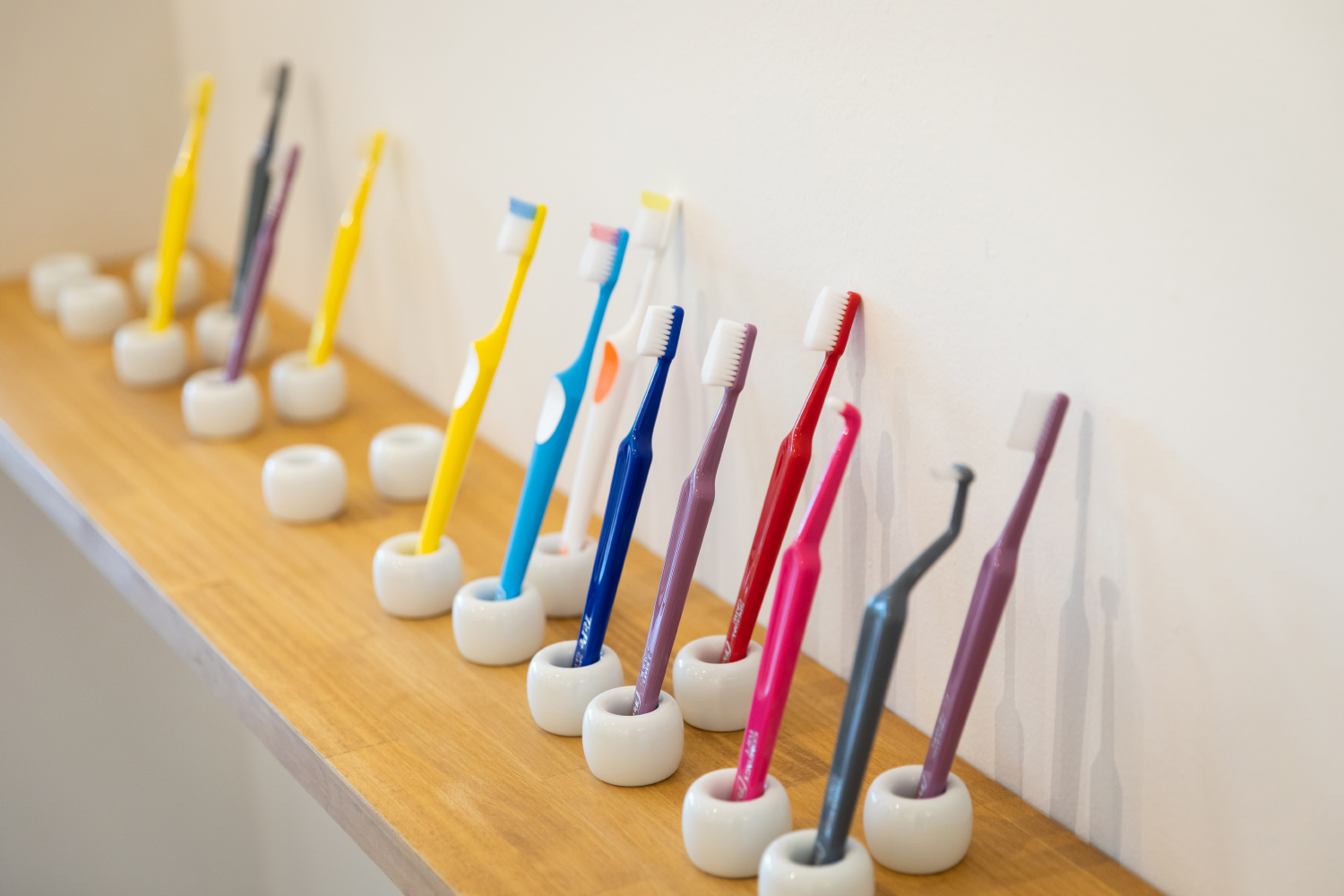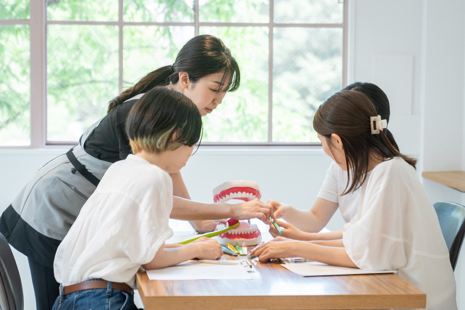 ラプレスタッフがあなたのお口に合わせた歯ブラシを選びます。患者さんの気持ちになることも大切な学びです。