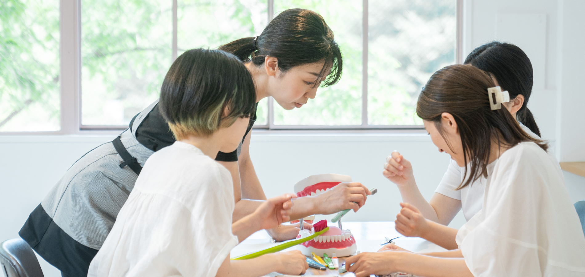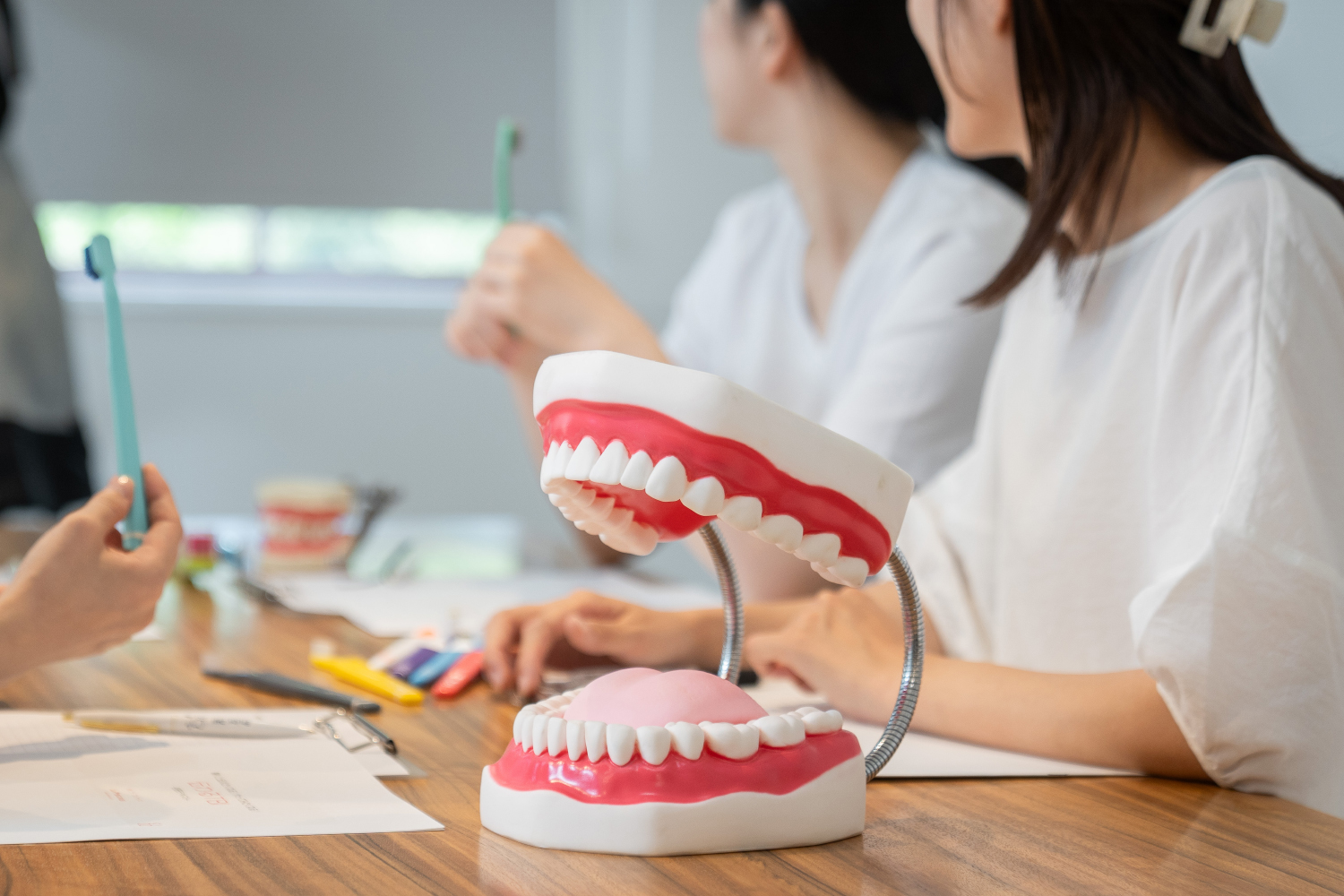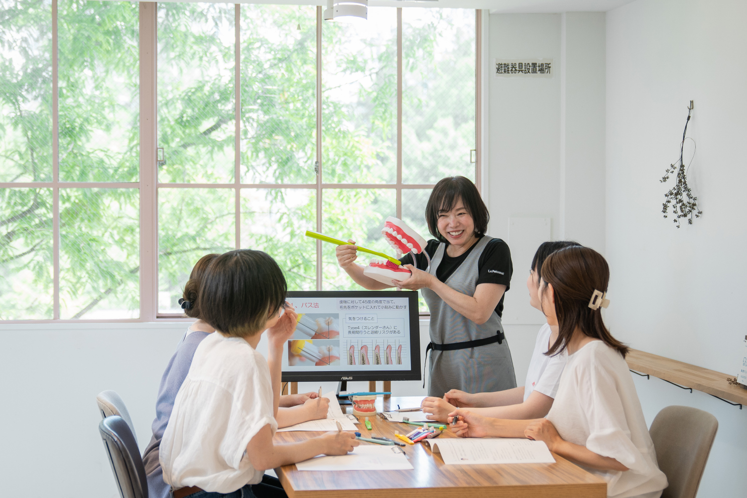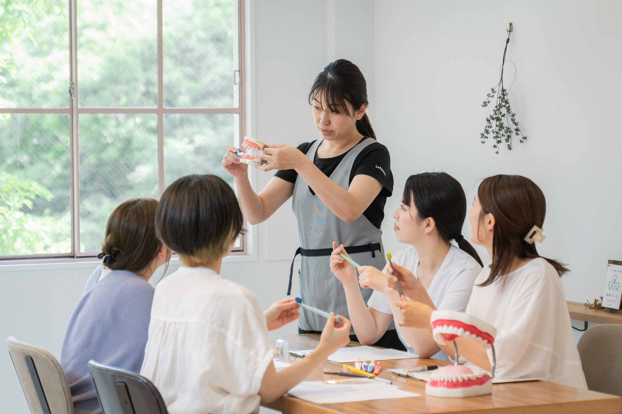 基礎講座、歯ブラシの知識、伝え方、ロールプレイング、チェアを使ったブラッシング指導実習など盛りだくさんの内容です!